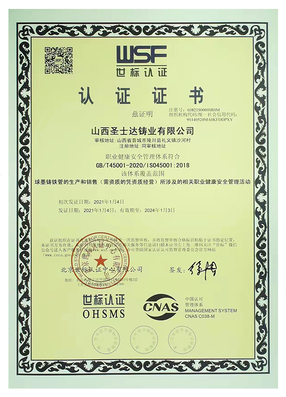 我公司出產的球墨鑄鐵管能承受很高的內壓,在進行水壓實驗中,實驗壓力比國際尺度和歐洲尺度都高出1MPa。球墨鑄鐵管還具有良好的抗外壓性,可以降低管床和保護層制作的要求,使管道鋪設既經濟又可靠;另外,外噴鋅、噴瀝青漆、內襯水泥等措施保證了鑄管的內、外抗侵蝕性。我公司的噴鋅質量符合ISO8179的劃定,每平方米的管道*小噴鋅量為130g,瀝青漆的厚度不低于70μm,水泥砂漿內襯質量符合ISO4179的劃定,保證砂漿堅固密室、光滑、附著力強。