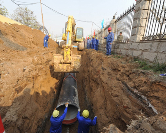 球墨鑄鐵管安裝埋設深度要達標:設計溝槽底寬一般為管外徑加0.5米,并根據土質狀況,確定開挖坡度(i),繪制溝槽剖視圖。管道的埋設深度應根據冰凍程度、外部荷載與其它管道交叉等因素確定。在一般情況下,埋設深度可在冰凍線以下0.2米處,并符合如下條件:當管徑大于100mm時,管頂最小埋深為1.20米。 1.溝槽開挖    溝槽底寬應按下式計:B=D1+2(b1+b2) 式中:B—管道溝槽底部的開挖寬度(mm) D1—管道結構的外緣寬度(mm) b1—管道一側的工作面寬度(mm) b2—管道一側的支撐寬度(mm)   2.溝槽支撐    根據溝槽土質、地下水、開槽斷面、荷載條件等因素進行設計,要求牢固可靠,防止塌方、支撐不得妨礙下管和穩管。    3.T型接口管道在垂直或水平方向轉彎處應設支墩。應根據管徑、轉角、工作壓力等因素經計算確定支墩尺寸。 4.輸送生活飲用水時,管道不應穿過毒物污染區,如必須穿過時應采取防護措施。    5.凡承插連接的球墨鑄鐵管線,必須經計算設支墩,參見國家建筑標 準設計圖集03SS505《柔性接口給水管道支墩》。    6.球墨鑄鐵管的外防腐蝕涂層應根據敷管地的土質情況來選擇鍍鋅和環氧瀝青涂層或更高要求的涂層。 7. 管道安裝完、試壓合格后,宜用低氯離子水沖洗和0.03%高錳酸鉀水溶液消毒。  在城市供水工程中,供水管線的造價在整個供水工程中所占的投資比較大,約占整個供水工程總造價的50~70%。因此,選擇合適的管材及良好的施工質量,是保證城市供水管網安全運行的根本保證。球墨鑄鐵管具有鐵的本質、鋼的性能,防腐性能優異、延展性能好,安裝簡易、主要用于市政、工礦企業給水、輸氣等。球墨鑄鐵管執行標準GB/T13295-2008 ISO2531/2008。
